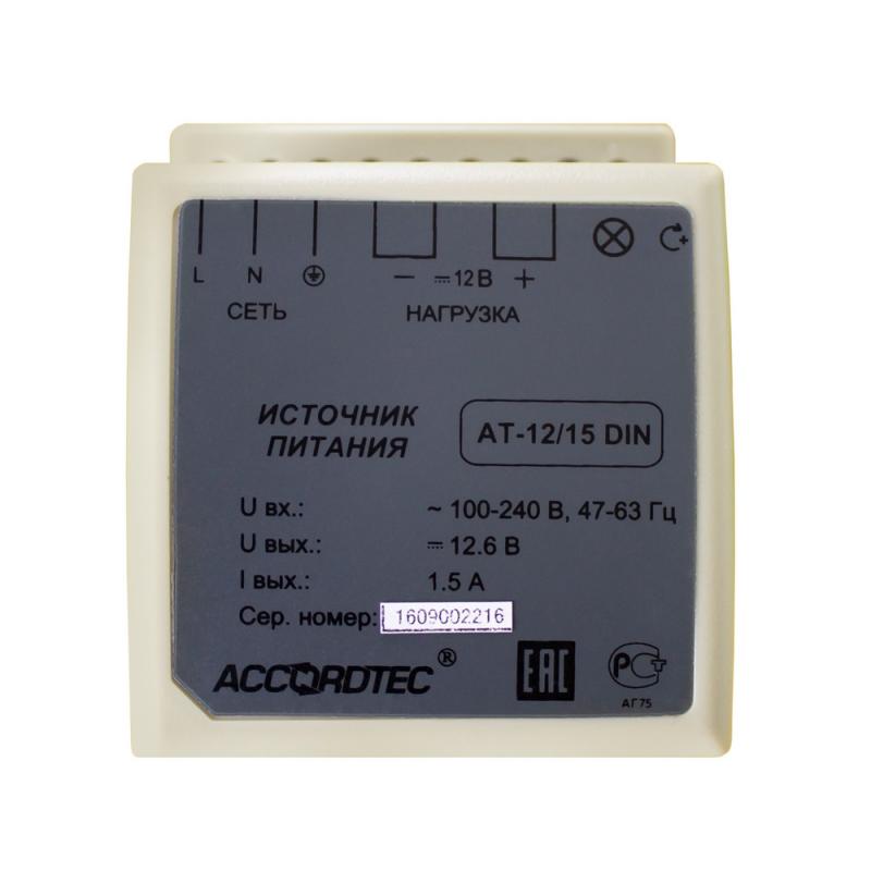 Блок питания стабилизированный AT-12/15 DIN предназначен для питания электрорадиоаппаратуры, систем видеонаблюдения и контроля доступа выпрямленным стабилизированным напряжением 12В, током не более 1.5А. Ключевыми особенностями АТ-12/15 DIN являются: выходное напряжение DC 12.6 В, регулировка выходного напряжения от 11.7В до 14.7В, номинальный ток нагрузки 1.5 А, крепление на DIN рейку. Источник стабилизированного питания Accordtec AT-12/15 DIN имеет встроенную защиту от короткого замыкания на выходе.