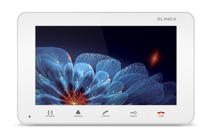 SM-07M White, Видеодомофон цветной, настенный, 7" цветной TFT LCD дисплей 16:9, разрешение экрана 800×480. Подключение 2-х вызывных панелей и 2-х видеокамер. Встроенная память на 100 кадров. Поддержка microSD карт до 32 ГБ. Интерком до 4-х домофонов: SL-10IP, SL-10M, SL-10, SL-07IP, SL-07M, SL-07, SL-07M, SQ-07M, SQ-07, SM-07M, MS-04, SM-04M (SL-07IP и SL-10IP могут быть только основными при соединении в интеркоме). 16 мелодий вызова, регулировка времени открытия замка, регулировка громкости вызова и громкости разговора. Потребляемая мощность – до 7 Вт, питание: ~ 100-240 В или +13,5 В. Размеры: 193×123×18 мм. Цветовые решения: белый. Рекомендуется использовать с ML-15HR и ML-16.